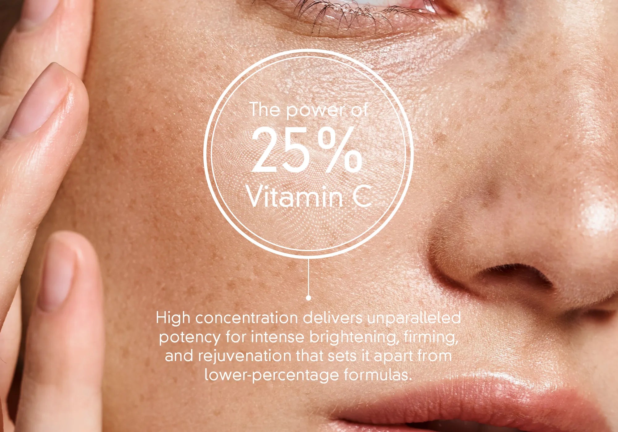 Our 25% Vitamin C is a potent antioxidant that brightens, firms, and protects your skin. This high concentration boosts collagen production, fades dark spots, and fights signs of aging, giving you a radiant, youthful complexion in time.